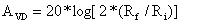如原理框圖所示(第四頁(yè)),PAM8403/CS8403內(nèi)部有兩級(jí)放大器,第一級(jí)增益由輸入電阻Ri(芯片外部與芯片內(nèi)部之和)和反饋電阻Rf決定,第二級(jí)增益固定為2x,第一級(jí)放大器的輸出作為第二級(jí)放大器的輸入,因此兩個(gè)放大器的增益正好相乘,但相位相差180º。所以PAM8403/CS8403總的增益為: