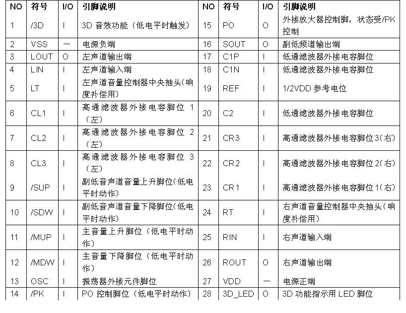 PT2353是3件式揚(yáng)聲器系統(tǒng)電子分頻器,內(nèi)含三個聲道的電子音量控制器,兩聲道二階高通濾波器,及一個由兩聲道混音成單音的二階低通濾波器。PT2353整合了復(fù)雜的電子式音量及電子分頻器功能,又不需要微處理器控制,是特別為高品質(zhì)3件式音響系統(tǒng)而設(shè)計。廣泛應(yīng)用于AV音響器材,迷你組合音響,汽車音響,多媒體音響等。