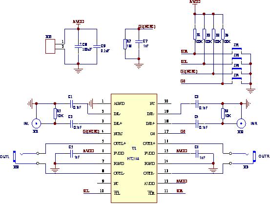 差分輸入時,INL+/INL-分別接左通道輸入信號的正負端,INR+/INR-分別接右通道輸入信號的正負端。