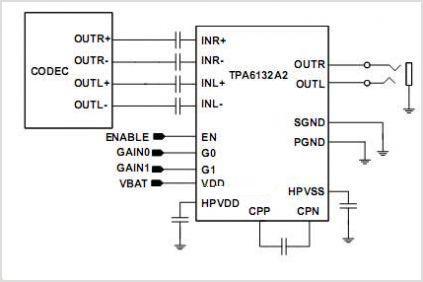 TPA6132A2 (TPA6132) 采用全差動(dòng)輸入,以減少音頻源與耳機(jī)放大器之間的系統(tǒng)噪聲拾取。高電源噪聲抑制性能和差動(dòng)架構(gòu)增加了噪聲抗擾度。對(duì)于單端輸入信號(hào),請(qǐng)將 INL+ 和 INR+ 接地。