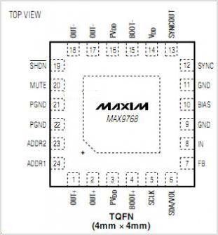 MAX9768具有高達77dB的PSRR、低至0.08%的THD+N和高達97dB的SNR。可靠的短路和熱過載保護防止故障狀態(tài)下器件損壞。MAX9768采用24引腳薄型QFN-EP (4mm x 4mm x 0.8mm)封裝,工作于-40°C至+85°C擴展級溫度范圍。
