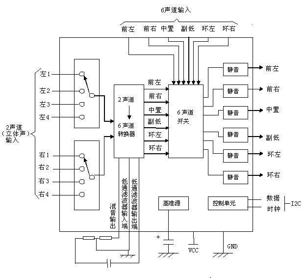 內(nèi)置2聲道——6聲道轉(zhuǎn)換器和副低頻低通濾波器;