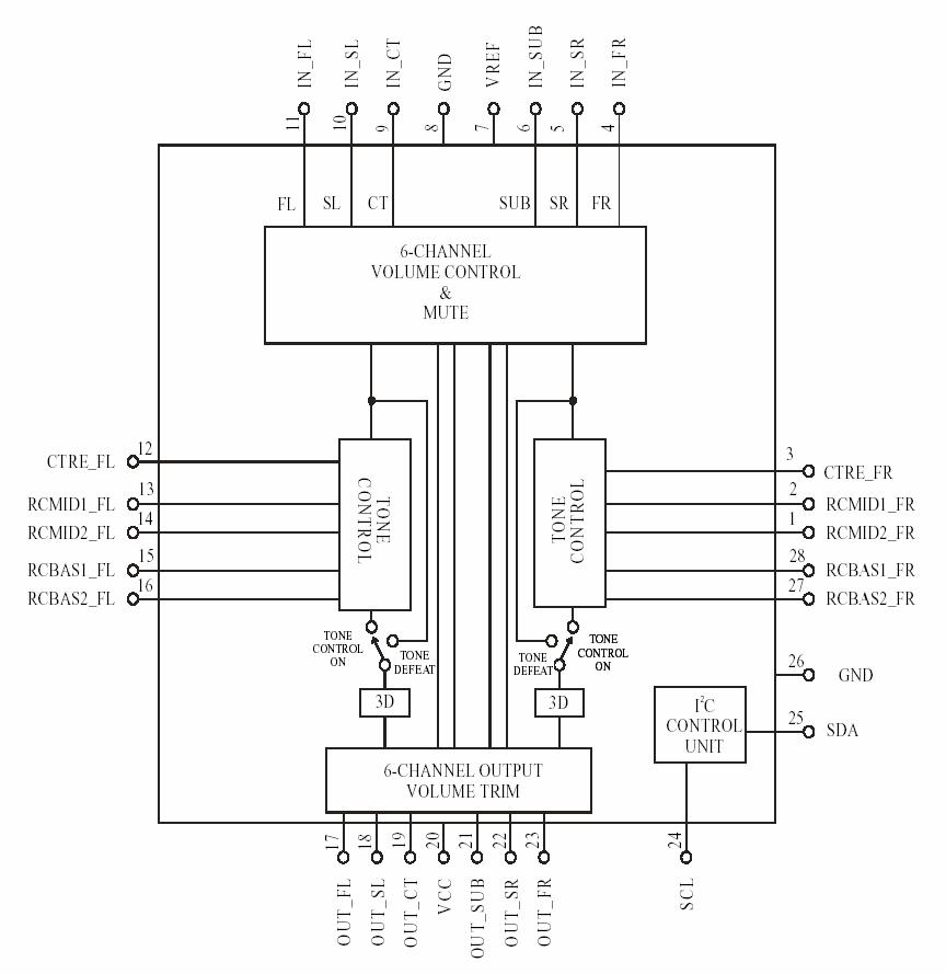 6聲道獨(dú)立配置(TRIM)音量控制 0- -15db(1 dB /STEP)
