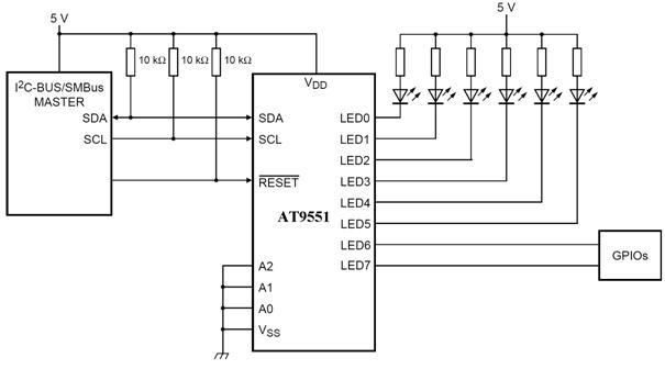 PCA9551/AT9551——8位的LED驅動器,具備閃光控制功能,也可以作為普通I/O擴展器使用PCA9551/AT9551為背光和RGB混色應用提供驅動8個并聯(lián)LED的能力。這個器件也可以單獨開啟、關閉或閃爍每個LED(閃爍頻率有兩種可編程方案可選),芯片內部集成振蕩器電路,具有可編程的閃光控制驅動功能。此外,該器件還可以通過I2C 或 SMBus接口實現(xiàn)傳感器控制,電源開關,開關按鈕和狀態(tài)指示照明等功能。PCA9551/AT9551二者管教兼容。