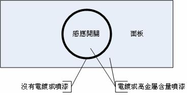 d.同樣的,感應(yīng)電極與手指之間不能有金屬層夾在中間,所以面板上不可以有金屬電鍍及含金屬超過15%的噴漆等會形成導(dǎo)電層的設(shè)計。