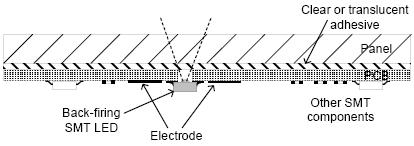 d.如果在感應(yīng)電極中開孔加裝LED,必須加大感應(yīng)電極以彌補開孔所損失的面積,所以增加的感應(yīng)電極面積至少必須相等於開孔的面積。