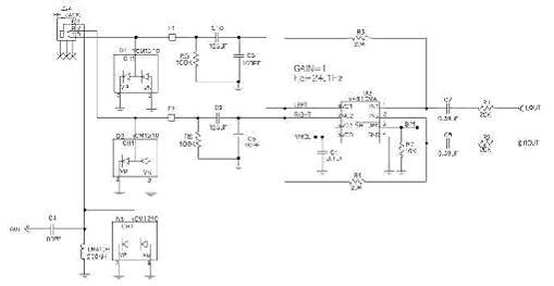 上述原理圖使用了National Semiconductor的耳機(jī)功放 LM4910,LM4910器件規(guī)格書中推薦使用R1~R4、C7、C8。左右音頻聲道放大器放大倍數(shù)為R3/R1