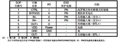 (2)單端輸入,ACF-1 固定模式應(yīng)用,或 ACF-2 固定模式應(yīng)用。通過(guò)打開(kāi)開(kāi)關(guān)S1進(jìn)入SD關(guān)斷模式;若不需SD低功耗應(yīng)用,可去掉開(kāi)關(guān)S1。(請(qǐng)根據(jù)預(yù)置模式和VDD電壓設(shè)置不同RCTRL1和RCTRL2值)