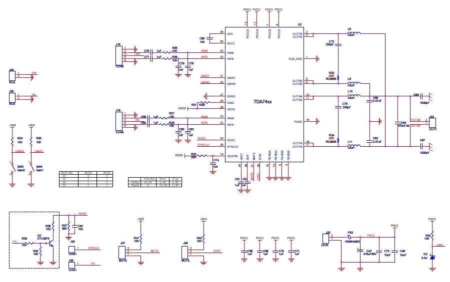 TDA749X系列PBTL(雙聲道并聯(lián)單聲道)輸出應(yīng)用電路圖