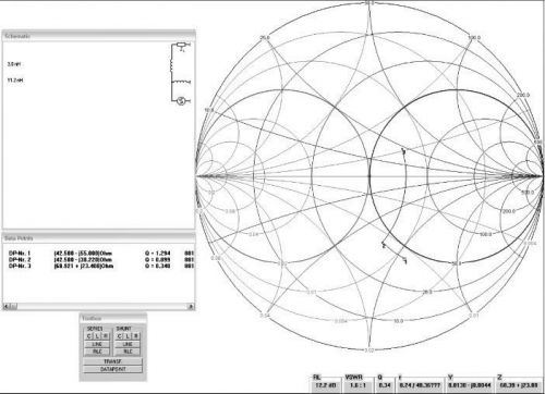 期望單端負載導納Y=1/75-J(1/227)=0.013-J0.0044 Seimens(并聯(lián)電路一般用導納表示)。