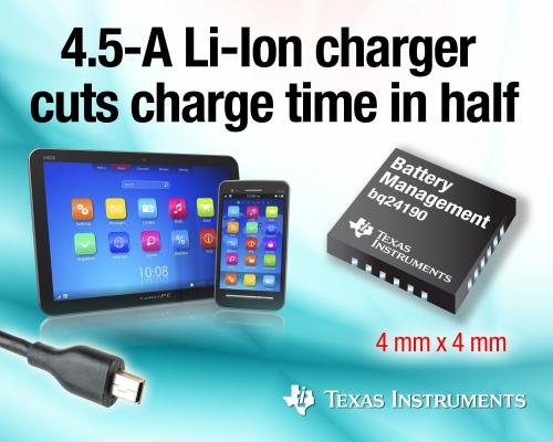 - 為單體鋰離子電池組實(shí)現(xiàn)更快速充電:4.5A 輸出 20V 輸入充電器可通過(guò)獨(dú)特的電池路徑阻抗補(bǔ)償將充電時(shí)間銳減一半;