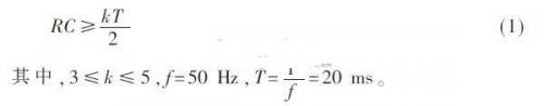 整流濾波電路主要由整流橋堆和大容量濾波電容組成,如圖2所示。整流橋堆具有體積小巧、輸出電流大、安裝方便等優(yōu)勢,并能代替由4只二極管組成的傳統(tǒng)橋式整流電路。濾波電路采用大容量電解電容濾波,增加了輸出電壓的穩(wěn)定性。根據(jù)式(1)可求出所需濾波電容容量。