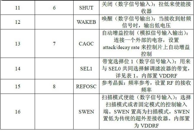 XC4366是一個 ASK/OOK(開關(guān)鍵控)的單晶片射頻接收集成電路設(shè)備。它是一個真正的“從天線接收到數(shù)據(jù)輸出”的單片電路。所有的射頻和中頻的調(diào)諧都在集成電路里完成,這樣可以無須手動調(diào)整并且降低成本。實(shí)現(xiàn)了一個高度可靠且低成本的解決方案。XC4366是一個采用 16 引腳封裝且功能齊全的芯片,XC4366A/B/C/DL 采用了 8 引腳封裝,功能稍有減少。XC4366 提供了兩種附加的功能,(1)一個關(guān)閉引腳,在任務(wù)周期操作時可以用來關(guān)閉設(shè)備;(2)一個喚醒輸出引腳,當(dāng)接收到射頻信號時,它可以提供一個輸出標(biāo)記。這些特點(diǎn)使得 XC4366 可以用在低功耗的應(yīng)用上,比如 RKE 和遠(yuǎn)程控制。