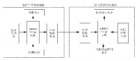 如圖1所示基于PIC智能遠程無線控制風(fēng)扇系統(tǒng)設(shè)計系統(tǒng)框圖,主要包括遙控信號發(fā)射電路、信號接收控制電路兩個重要部分。遙控信號發(fā)生電路包括:溫度傳感器、紅外管發(fā)射電路、檔位控制鍵以及顯示部分等;信號接收控制電路主要包括:紅外接收電路、狀態(tài)指示電路、風(fēng)扇電機轉(zhuǎn)速控制電路以及電壓轉(zhuǎn)換電路等。
