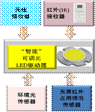 正在興起的LED智能照明是LED通用照明市場的另一個重點,也是重要發(fā)展方向。所謂“智能照明”,往往結(jié)合了智能可調(diào)光LED驅(qū)動器、無線接收器、紅外接收器、環(huán)境光傳感器及無源紅外占用情況傳感器等。