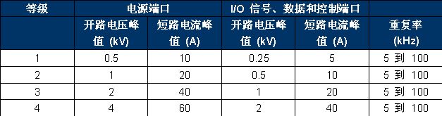 表 2、IEC 61000-4-4 嚴(yán)重性測(cè)試等級(jí)。