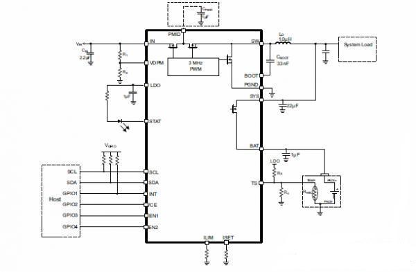 This allows for proper charge termination and enables the system to run with a defective or absent battery pack. Additionally, this enables instant system turn-on even with a totally discharged battery or no battery. The powerpath management architecture also permits the battery to supplement the system current requirements when the adapter cannot deliver the peak system currents. This enables the use of a smaller adapter.