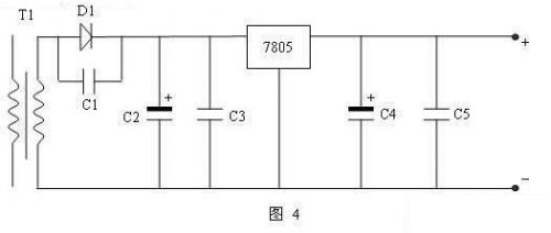 電源負(fù)載能力差是一個(gè)常見的故障,一般都是出現(xiàn)在老式或工作時(shí)間長的電源中,主要原因是各元器件老化,開關(guān)管的工作不穩(wěn)定,沒有及時(shí)進(jìn)行散熱等。應(yīng)重點(diǎn)檢查穩(wěn)壓二極管是否發(fā)熱漏電,整流二極管損壞、高壓濾波電容損壞等。例:我廠近紅處激光光譜儀(VECTOR 22),開機(jī)后無法完成自檢并報(bào)警且主板指示燈不斷閃爍。經(jīng)檢查,供光譜儀主板的直流5V電源僅剩2.3伏左右,脫開5V直流電源的負(fù)載,通電再次測量5V直流電源,這時(shí)則有5V,初步判斷此5V直流電源帶載能力差,拆開電源外殼進(jìn)行檢修,由于沒有帶負(fù)載時(shí),通電有直流5V輸出,故重點(diǎn)檢查次級線圈側(cè)的輸出整流電路,給5伏電源接上假負(fù)載通電進(jìn)行測量發(fā)現(xiàn)三通穩(wěn)壓7805的1、2腳之間電壓為5.2伏,2、3腳之間卻剩2.3伏,如圖4,故判斷三通穩(wěn)壓管7805性能變壞,更換三通穩(wěn)壓管7805故障解決。