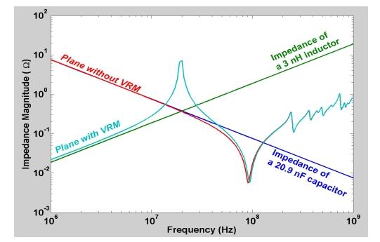 圖3:包括和不包括電源整流模塊的平板對輸入阻抗。