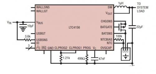 不過,即使需要這么大的充電電流,在沒有大電流交流適配器可用時(shí),用戶依然想用USB端口給他們的大功率設(shè)備充電。為了滿足這種要求,當(dāng)有交流適配器可用時(shí),電池充電器必須能以大電流(》2A)充電,但是仍然能高效率地利用USB端口可提供的2.5W至4.5W功率。此外,該IC產(chǎn)品需要保護(hù)敏感的下游低壓組件,使它們免受可能由損壞導(dǎo)致的過壓事件的影響,并高效率地將大電流從USB輸入、交流適配器或電池引導(dǎo)到負(fù)載,以最大限度地減少以熱量形式損失的功率。同時(shí),該IC必須安全地管理電池充電算法,并監(jiān)視關(guān)鍵的系統(tǒng)參數(shù)。