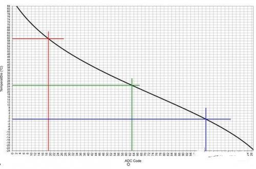 圖3:7位熱敏電阻ADC顯示預(yù)置的LTC4156溫度跳變點(diǎn)