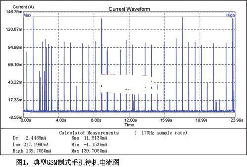 圖1是某GSM制式手機(jī)在待機(jī)情況下的耗流波形圖,正是Idc很小而電流流量振幅ΔI較大的情形;谏鲜鼋Y(jié)論替換交流阻抗較小的電感后,平均待機(jī)電流由2.4465mA降低到了2.1337mA.平均待機(jī)電流減少了12.8%,這意味著可以將手機(jī)的待機(jī)時(shí)間延長14.7%.那么對直流阻抗較小的電感而言,其價(jià)值如何體現(xiàn)?它適合于Idc很大而電流流量振幅ΔI較小的工作模式,這正是用戶在使用如通話、多媒體播放、游戲、GPS導(dǎo)航等功能時(shí)便攜式產(chǎn)品所處的工作環(huán)境,此時(shí)可以期待直流阻抗較小的電感會帶來更長的使用時(shí)間。不過由于平均電流都比較大,一定程度的改善并不會對實(shí)際使用時(shí)間造成多少差別,反而我們相信更長待機(jī)時(shí)間的誘惑可以讓設(shè)計(jì)者對使用時(shí)間做出犧牲。