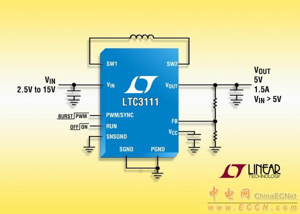 Linear推出同步降壓-升壓型轉(zhuǎn)換器 LTC3111,該器件可在很寬的電源范圍內(nèi)工作,包括單節(jié)或多節(jié)電池、超級(jí)電容器組和交流適配器,提供高達(dá) 1.5A 輸出電流。LTC3111 的輸入和輸出電壓范圍為 2.5V 至 15V,從高于、低于或等于穩(wěn)壓輸出的輸入電壓提供穩(wěn)壓輸出。該器件采用的低噪聲降壓-升壓型拓?fù)湓诮祲汉蜕龎耗J街g提供連續(xù)和無抖動(dòng)的轉(zhuǎn)換,從而使其非常適用于 RF 和其他噪聲敏感型應(yīng)用,這類應(yīng)用在使用可變輸入電源時(shí),必須保持低噪聲和恒定的輸出電壓。