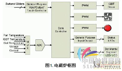 圖1所示為電磁爐的方框圖。這種電器必須提供以下關(guān)鍵功能: