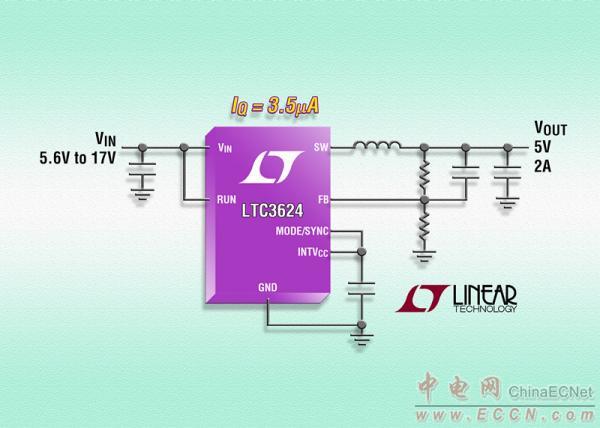 照片說明:17V、2A 同步降壓型穩(wěn)壓器僅需 3.5µA 靜態(tài)電流