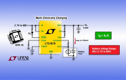Linear推出 60V、恒定電流 / 恒定電壓 250mA 多化學組成電池充電器 LTC4079。該器件的低靜態(tài)電流線性拓撲可提供一種簡單的無電感器設計,并接受 2.7V 至 60V 的輸入電壓范圍。一個可利用電阻設置的 1.2V 至 60V 電池充電電壓范圍和 ±0.5% 的嚴格充電電壓準確度以及內(nèi)置的充電終止使得 LTC4079 適合多種電池化學組成 (包括: 鋰離子、鎳和鉛酸電池)。充電電流可利用一個外部電阻器在 10mA 至 250mA 的范圍內(nèi)進行調(diào)節(jié),與同類競爭的充電器不同,LTC4079 可在低充電電流下保持高準確度。典型應用包括嵌入式汽車和工業(yè)系統(tǒng)、后備電池充電、能量收集和薄膜電池產(chǎn)品。