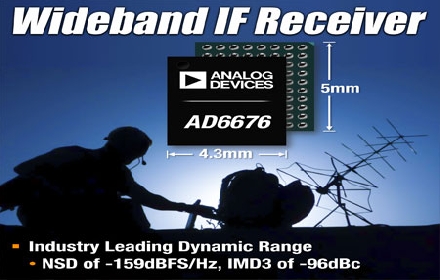 ADI最近推出單芯片寬帶IF接收器子系統(tǒng)AD6676,可讓高性能通信和儀器儀表設(shè)備的設(shè)計(jì)人員減少接收器設(shè)計(jì)的復(fù)雜性,同時(shí)實(shí)現(xiàn)頻率規(guī)劃靈活性和業(yè)界領(lǐng)先的瞬時(shí)動(dòng)態(tài)范圍。觀看有關(guān)AD6676的視頻:www.analog.com/AD6676video。