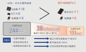 在多年積累的ROHM模擬設(shè)計(jì)技術(shù)的基礎(chǔ)上,由日本貴彌功株式會(huì)社提供確定規(guī)格、樣品評(píng)估等方面的支持,使以往由20個(gè)以上分立元器件完成的EDLC電池平衡功能僅通過1枚芯片即可實(shí)現(xiàn),這實(shí)屬業(yè)界首創(chuàng)※。元器件安裝空間可縮減約38%。