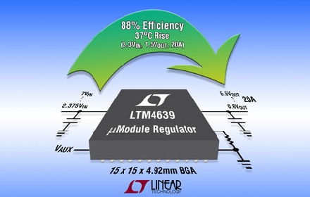 Linear推出 20A DC/DC 降壓型微型模塊 (μModule®) 穩(wěn)壓器 LTM4639,該器件能夠以最佳效率將 2.5V 至 7V 的主電源系統(tǒng)電壓軌轉(zhuǎn)換到低至 0.6V 的負(fù)載點電壓。在復(fù)雜的機架式系統(tǒng)中,改善電壓轉(zhuǎn)換效率可節(jié)省能耗、減輕溫度管理負(fù)擔(dān)并減小設(shè)備尺寸。應(yīng)用包括基于云的儀器設(shè)備和 RAID 系統(tǒng),在這類系統(tǒng)中,3.3V 是優(yōu)選的主電源配電軌。
