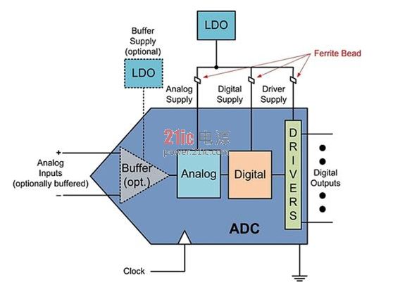 采用單個(gè)LDO驅(qū)動(dòng)多個(gè)ADC電源輸入