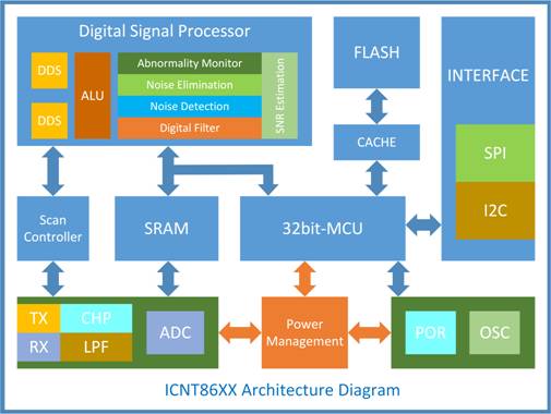 集創(chuàng)ICNT86系列觸控芯片架構框圖。