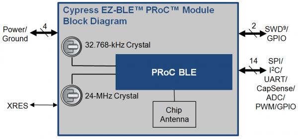 EZ-BLE PRoC模塊目前處于樣品階段,預(yù)計(jì)2015年5月量產(chǎn)。該模塊的封裝方式為21-pad SMT,包含了屏蔽,理想適用于空間尺寸有限的應(yīng)用。