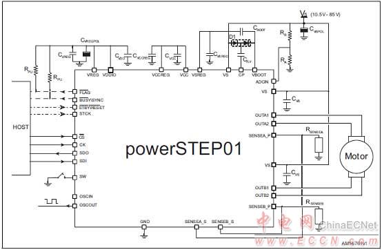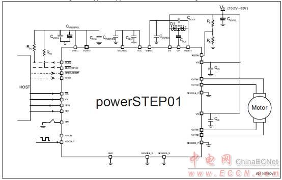圖3. powerSTEP01典型應(yīng)用電路-電流模式