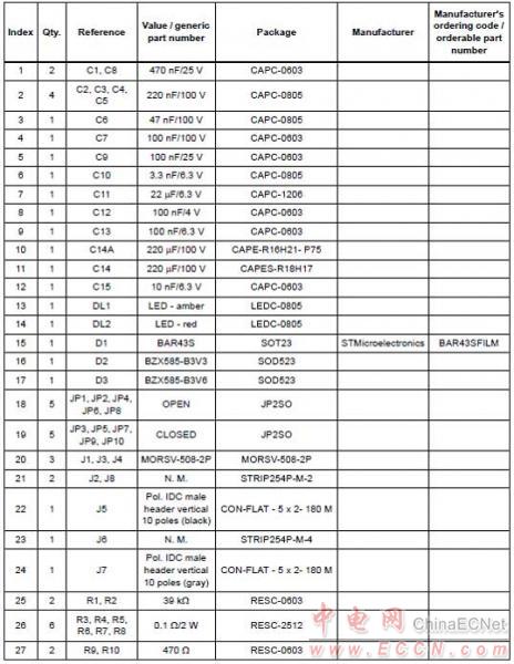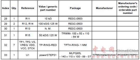 演示板EVLPOWERSTEP01 材料清單: