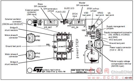 圖7. 演示板EVLPOWERSTEP01 PCB主要元件布局圖