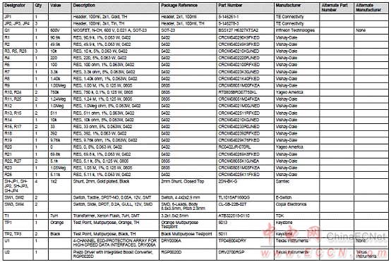 DRV2700EVM-HV500反激高壓評(píng)估模塊材料清單: