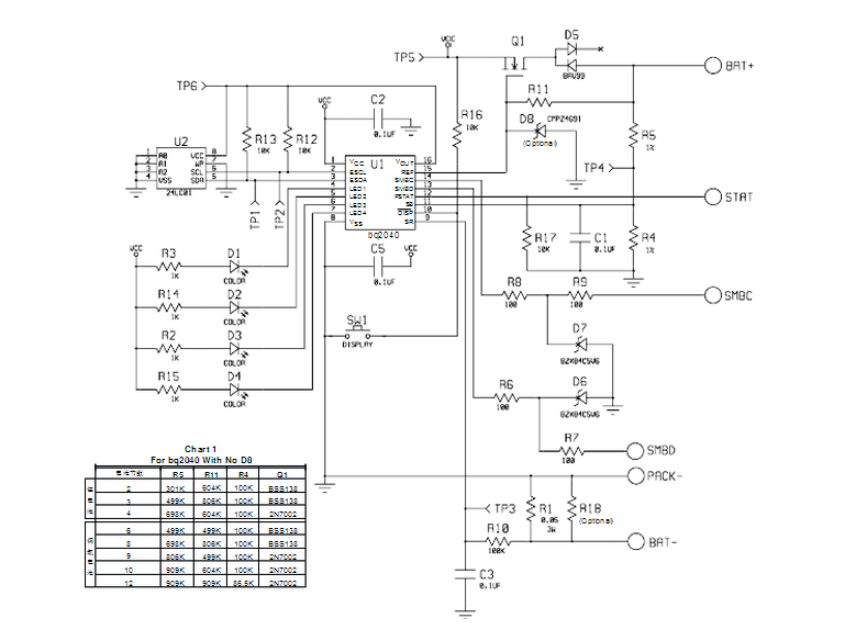 BQ2040是TI公司生產(chǎn)的電池電量檢測(cè)芯片,它可以將檢測(cè)的信號(hào)通過(guò)I2C總線與微處理器交換數(shù)據(jù),然后將電量信號(hào)傳輸?shù)斤@示電路中,最終通過(guò)LED顯示電池電量。BQ2040支持鎳鎘、鎳氫和鋰離子電池,也支持SBS1.0協(xié)議但只可以驅(qū)動(dòng)4個(gè)LED。