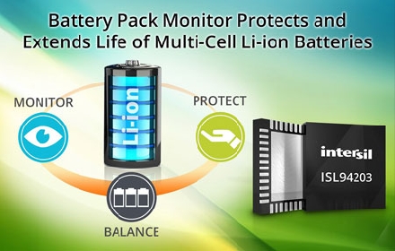 Intersil公司精密產(chǎn)品高級(jí)副總裁Philip Chesley表示:“Intersil高度集成的電池組檢測(cè)器使得設(shè)計(jì)鋰離子可充電電池管理系統(tǒng)變得很容易。我們的客戶看重功能豐富的ISL94203能夠延長(zhǎng)電池續(xù)航時(shí)間,并提供高精確性的電池單元平衡和對(duì)快速變化的負(fù)載進(jìn)行快速響應(yīng)!
