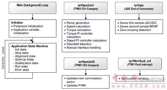 Freescale公司的MCF51AG128是32位ColdFire微控制器,內(nèi)核提供50 MHz的內(nèi)核速度和25 MHz的總線速度,提供帶有直接存儲器訪問(DMA)和iEvent模塊,提供帶有直接存儲器訪問(DMA)和iEvent模塊配備與其先進的三相電機控制的需求相符的外設(shè)組合和系統(tǒng)安全和完整性功能.主要用在智能家電和工業(yè)應(yīng)用.本文介紹了MCF51AG128主要特性和框圖,以及采用MCF51AG128無傳感器三相BLDC馬達演示板特性,框圖,軟件流程圖和電路圖.