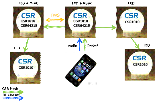 2015年9月16日,致力于亞太地區(qū)市場的領(lǐng)先半導(dǎo)體元器件分銷商---大聯(lián)大控股宣布,其旗下詮鼎推出基于CSR藍(lán)牙技術(shù)的智能照明、音響一體解決方案。在該解決方案中,大聯(lián)大詮鼎將CSR Bluetooth® Smart解決方案—CSR Mesh作為系統(tǒng)組網(wǎng)技術(shù),再連接基于CSR TWS(True Wireless)的藍(lán)牙照明+音響一體機(jī),可實(shí)現(xiàn)智能手機(jī)APP、觸拍感應(yīng)及按鍵等多種控制方式。