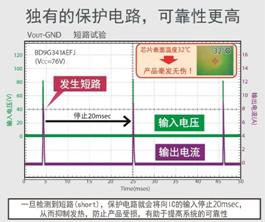 按一般產品的保護功能,當輸出引腳發(fā)生短路(接觸)時,因無法抑制產生的熱量而使IC過熱,最終使IC損壞。