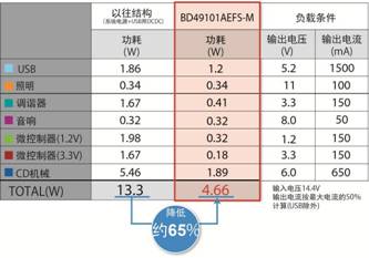 本產(chǎn)品利用ROHM多年積累的汽車音響用系統(tǒng)電源的技術(shù)訣竅,實(shí)現(xiàn)了以高效 DC/DC轉(zhuǎn)換器為中心的最佳電源系統(tǒng)。本產(chǎn)品的推出使ROHM以往產(chǎn)品13.3W的運(yùn)行功率降低到4.66W,成功地降低功耗65%左右。作為汽車音響用系統(tǒng)電源IC,實(shí)現(xiàn)了 業(yè)界最低的運(yùn)行功率。