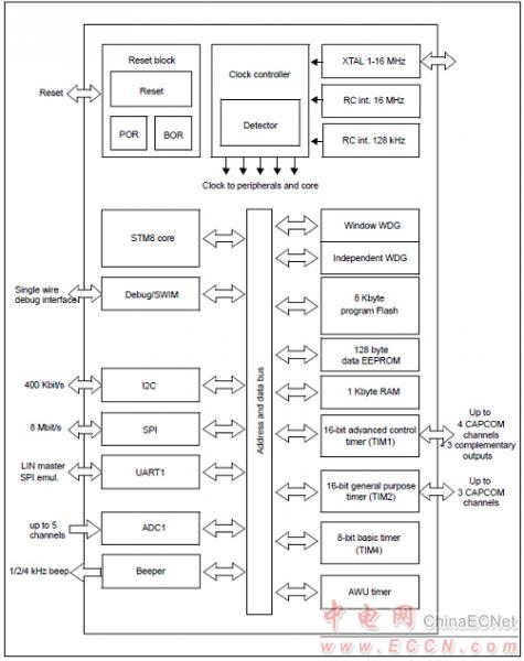 圖1.STM8S003F3/K3功能框圖