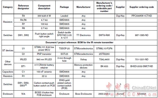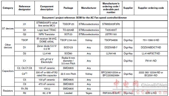 風(fēng)扇速度遙控板STEVAL-IHM037V1材料清單: