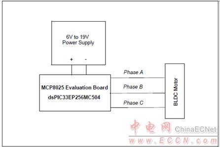 圖5.MCP8025 TQFP BLDC馬達(dá)驅(qū)動評估板框圖