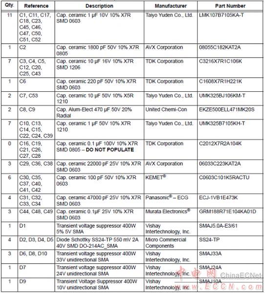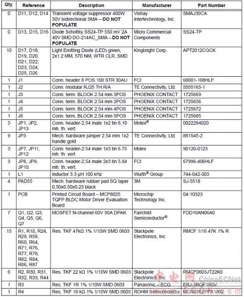 MCP8025 TQFP BLDC馬達(dá)驅(qū)動評估板材料清單: